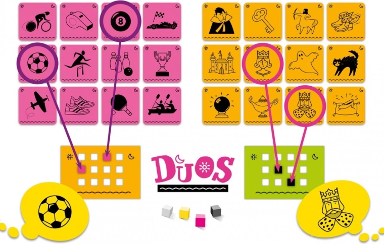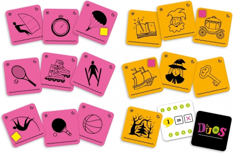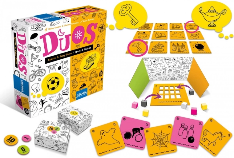 Duos: Sport & Basme este o alegere ideală pentru serile în familie sau întâlnirile cu prietenii, datorită regulilor simple și categoriilor variate. Jocul conține imagini cu sporturi și basme, pe care jucătorii le asociază între ele. Fiecare asociere reușită aduce puncte, iar scopul este să prezici modul de gândire al celorlalți jucători.