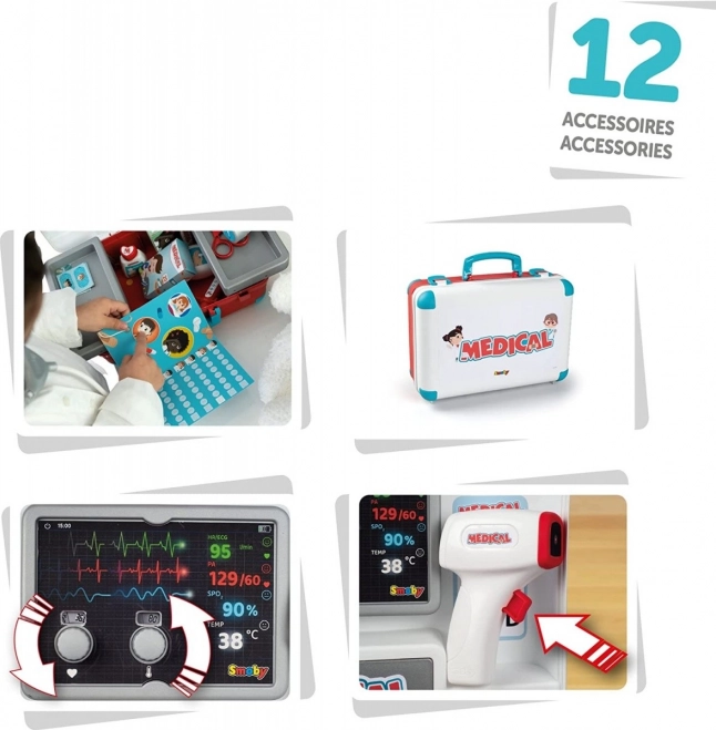 Oferă-i copilului tău oportunitatea de a deveni un mic medic cu acest set medical bogat echipat de la Smoby. Cu 12 piese precum un termometru mecanic, un stetoscop și o seringă, copilul tău va avea tot ce e necesar pentru îngrijirea „pacienților” săi.