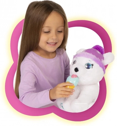 Poluș este un urs polar interactiv, foarte drăgălaș. Este confecționat din pluș moale și plăcut la atingere și are ochi cristalin cu sclipici. Emite 10 sunete! După ce mănâncă înghețata din set, i se face rău și începe să tremure de frig. Îngrijește-l și mângâie-l, iar imediat se va simți mai bine!