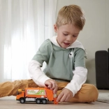 Apasă capota și activează farurile, proiectoarele de ceață și 2 efecte sonore autentice, care reproduc funcționarea reală a camionului de gunoi.