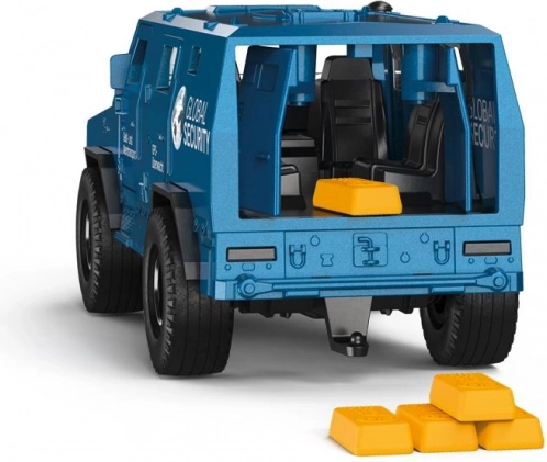 Modelul este excelent pentru dezvoltarea imaginației și jocuri de poveste – de la escortă bancară până la misiuni secrete. Lacul lucios, inscripția GLOBAL SECURITY și proporțiile realiste transformă această mașină într-o piesă atrăgătoare pentru joacă și expunere. În pachet pot fi incluse accesorii tematice, precum „lingouri de aur”, pentru o experiență de joc și mai captivantă.