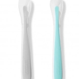 Setul de masă Easy-Feed este un ajutor indispensabil pentru orice părinte. Designul ergonomic facilitează servirea mesei dintr-o singură mișcare, în timp ce lingurile din silicon moale protejează gingiile copilului. Forma rotundă a lingurilor ajută la ștergerea ușoară a excesului de mâncare de pe fața copilului.