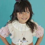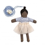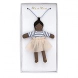 Colierul este realizat din păpușa excelent lucrată numită Ruby și lanț albastru cu mărgele. Păpușa Ruby este din bumbac și are o fustiță frumoasă din tul de piersic.
