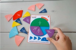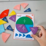Acest material didactic pentru învățarea calculului și recunoașterii fracțiilor introduce perfect copilul în lumea provocatoare a matematicii și îl ajută să înțeleagă regulile și relațiile care guvernează fracțiile.