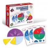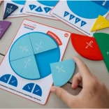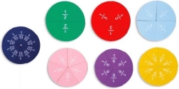 Setul conține elemente din lemn care ilustrează fracțiile 1/2, 1/3, 1/4, 1/5, 1/6, 1/8, 1/10; setul este completat de carduri de lucru corespunzătoare.