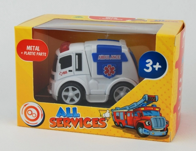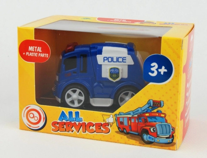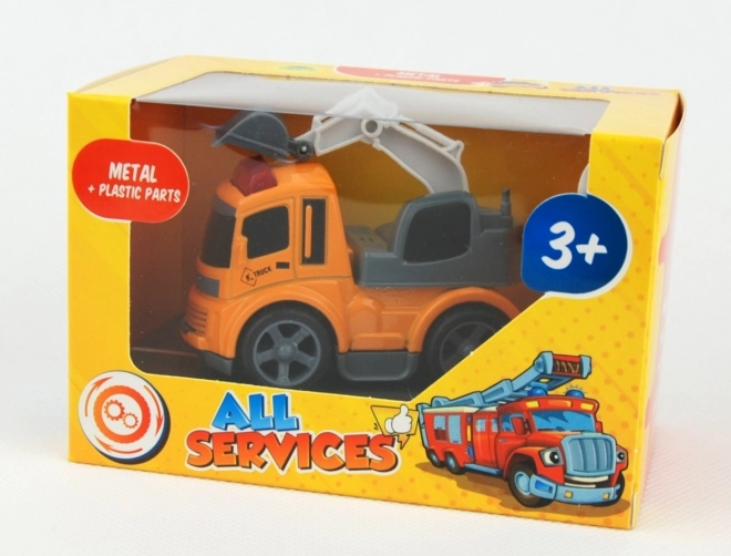 Vehicul metalic în cutieÎn sortiment: mașină de pompieri, mașină de poliție, ambulanță, excavator.