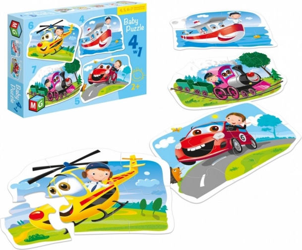Puzzle Mijloace de Transport 4v1 este ideal pentru copiii de la 2 ani, care doresc să înceapă să asambleze primele puzzle-uri. Fiecare puzzle conține un număr diferit de piese pentru o dificultate progresivă și dezvoltarea abilităților.