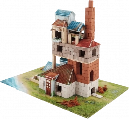 Construiți din cărămizi adevărate, arse la 1000 °C, și completați structura cu elemente autentice din lemn. Rezultatul este solid și credibil.