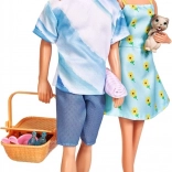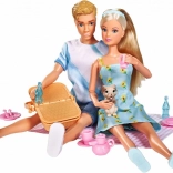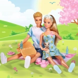 Porniți într-o aventură împreună cu păpușile Steffi și Kevin. Acest duo este perfect pregătit pentru o excursie de vară, însoțit de un cățeluș și echipat cu o pătură, coș de picnic și set de veselă.