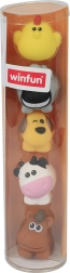 Un set adorabil de cinci jucării pentru baie cu animăluțe de la fermă – câine, vacă, puișor, cal și oiță. Datorită plasticului moale și formelor rotunjite, sunt ideale pentru prindere ușoară de către mânuțe mici și asigură multă distracție în cadă, acasă și în călătorii. Susțin imaginația și motricitatea fină.