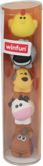 Acest set colorat aduce copiilor animăluțele preferate de la fermă într-o formă sigură și plăcut moale. Jucăriile sunt ușoare, se țin ușor în mână și sunt făcute pentru joacă în apă sau pe uscat. Susțin coordonarea ochi–mână, învățarea denumirilor animalelor și dezvoltarea vocabularului, precum și jocurile sociale.