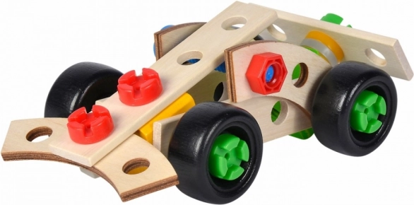 3 opțiuni de asamblare: monopost de Formula 1 și 2 mașini de curse diferite. Realizat din lemn de fag, piese din plastic, FSC 100, FSC 100.