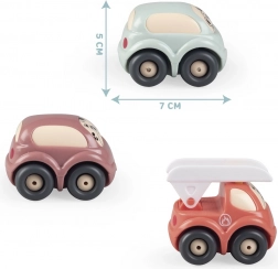 Două mașinuțe de oraș cu fețe de animale și o mașină de pompieri cu scară sunt rezistente la șocuri și pregătite pentru joaca de zi cu zi.