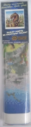 În pachet găsiți un set complet: pânză cu model pretipărit și strat adeziv, stilou de aplicare, tavă, ceară și set de pietricele colorate. Pentru o muncă ușoară se recomandă să dezveliți folia de protecție de pe pânză doar pe porțiuni, pentru ca adezivul să rămână curat și pietricelele să adere bine.