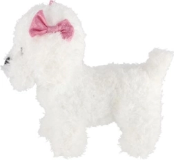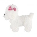 Adorabilul cățel alb din pluș, cu dimensiunea de 21 cm, este primul prieten ideal pentru bebeluși și copii mai mari. Este confecționat din pluș extra moale și catifelat, are fundițe roz delicate pe urechiușe și invită la îmbrățișări de dimineața până seara. Perfect pentru adormit liniștit și pentru îmbrățișări reconfortante oricând în timpul zilei. Potrivit încă de la 0 luni.