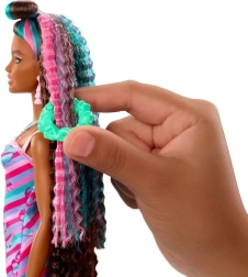 Lăsați copiii să descopere lumea modei și a creațiilor de păr cu păpușa Barbie Totally Hair inspirată de modelul cult din anii ’90. Păpușa are păr super lung, creponat, cu dungi roz și turcoaz, și poartă o rochie mulată cu imprimeu de fluturi. Datorită gamei variate de accesorii, stylingul este distractiv și ușor.