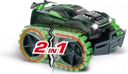 Cu mașina RC Carrera ULTIMATOR 2 în 1 vei stăpâni în siguranță atât urcușurile, cât și văile! Indiferent de suprafața care te așteaptă astăzi în aventura ta, cu Ultimator ești bine pregătit pentru orice teren. Prin apăsarea unui buton pe telecomandă treci de la tracțiunea pe roți la tracțiunea pe șenile și depășești toate obstacolele de pe pârtie. Dacă vrei să mergi ceva mai repede, poți reveni simplu, prin apăsarea unui buton, la tracțiunea pe roți. Chiar și după ploaie ești gata de acțiune: protecția împotriva stropilor de apă îl apără pe Ultimator de umiditate.
