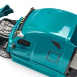 Acest model este potrivit atât pentru joacă, cât și pentru expunere, iar designul său proeminent în nuanța Miami Blue cu elemente cromate este cu adevărat atrăgător. Datorită șasiului cu trei axe și cuplajului standard integrat, modelul poate fi combinat cu toate remorcile din seria Siku Super.
