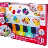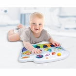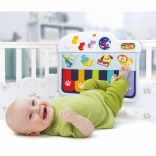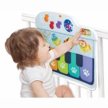 Mini pianul pentru cadrul pătuțului este conceput să fie sigur și moale, emitând sunete plăcute care atrag atenția copilului. Copilul poate să se joace în pătuț atât așezat, cât și culcat, apăsând cu piciorușele pe notele colorate. Această jucărie oferă trei moduri de joacă, permițând alegerea între sunetul pianului și alte trei instrumente: chitară, harpă sau trompetă.