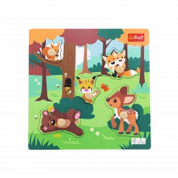 Setul de tip încastrat din lemn, cu grafică colorată a animalelor din pădure, este conceput pentru a-i distra pe copii și, totodată, a le dezvolta abilitățile. Fiecare piesă este solidă, ușor de prins și dotată cu un mâner din lemn pentru extragere facilă. Baza are forme frezate cu imagine alb-negru identică piesei, ceea ce îi ajută pe copii la asocierea intuitivă.