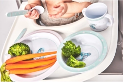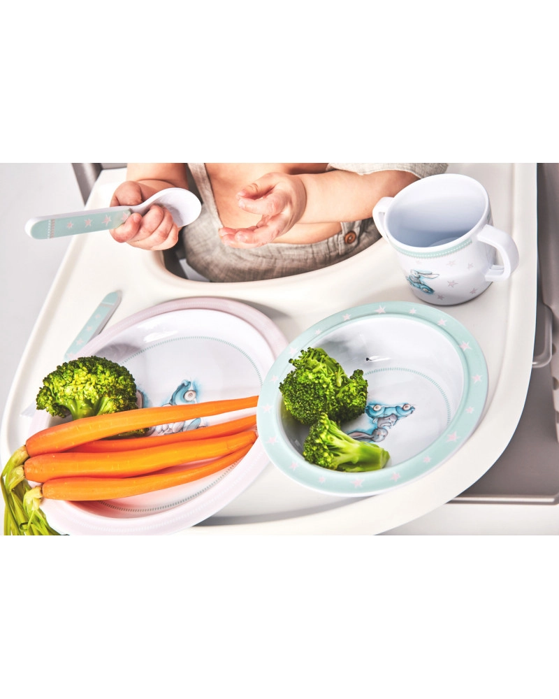 - Suprafață antiderapantă: Asigură stabilitate pe masă, ideal pentru toddleri care învață să mănânce singuri.