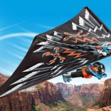 Planorul se remarcă prin aspectul său dinamic negru-portocaliu cu elemente argintii, care creează o atmosferă futuristă și stimulează imaginația copiilor.