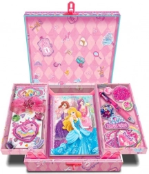 Descoperiți setul cadou fermecător într-o cutie decorativă cu motiv Princess. Cele două compartimente laterale se rabatează ușor, iar sub ele se află un jurnal pentru dorințe și amintiri secrete. Perfect atât pentru păstrarea mărunțișurilor, cât și pentru scrisul zilnic.