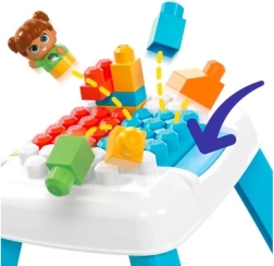 Această măsuță cu funcție de dărâmare permite construirea și distribuirea cuburilor prin simpla apăsare a unui buton, stimulând creativitatea și joaca distractivă.