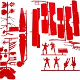 Componentele asamblabile permit realizarea unui model precis, incluzând elemente detaliate precum aripi și fuzelaj.