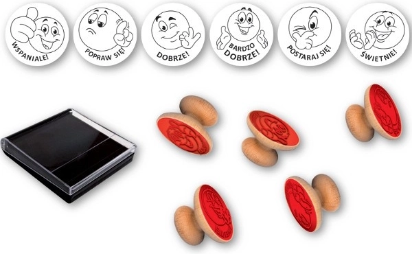 Aceste ștampile motivaționale reprezintă o modalitate minunată de a recompensa un copil pentru eforturile și progresele sale în învățare. Cu ajutorul celor șase ștampile din lemn cu evaluări diferite, puteți exprima cu ușurință recunoașterea atât acasă, cât și în mediul școlar. Setul include, de asemenea, o pernă cu cerneală, care face parte din pachet.