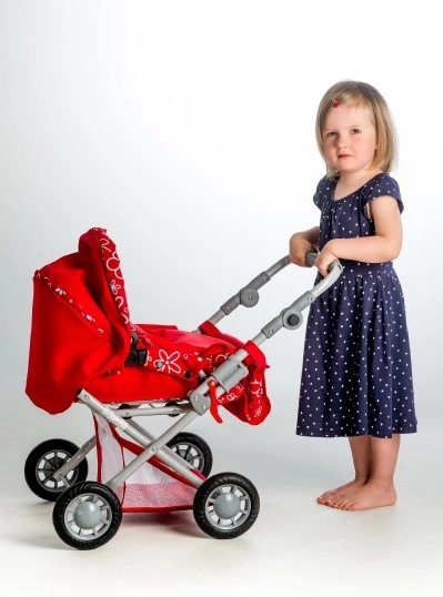 Căruciorul pentru păpuși Magda impresionează prin design realist și funcții practice. Construcția metalică stabilă, landoul textil și copertina reglabilă asigură „plimbări” confortabile pentru păpușile sau plușurile preferate. Datorită posibilității de pliere ușoară, este ideal și pentru spații mici sau pentru călătorii.