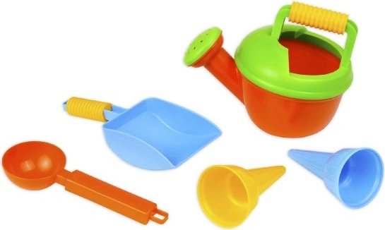 Set de bază distractiv pentru nisip, potrivit atât pentru băieți, cât și pentru fete de la 1 an. Conține o stropitoare cu mâner antiderapant, o lopățică, o lingură pentru înghețată și 2 cornete. Plastic ușor și rezistent, execuție sigură pentru cei mici și fabricat în Cehia pentru o durată lungă de viață în aer liber și în grădină.