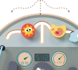 Rotița, mărgelele, labirintul, rola și butonul de răsucire creează o experiență realistă de condus și îi motivează în mod natural pe copii să exploreze și să se joace concentrat.