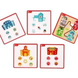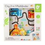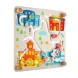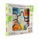Acest labirint din lemn, de calitate, oferă două scene educative într-una singură. Pe fața orașului, copiii conduc vehiculele și personajele pe trasee frezate către spital, pompieri sau poliție, exersând orientarea în spațiu, planificarea și răbdarea. Grafica colorată și traseele marcate clar îi motivează atât la joc independent, cât și la colaborare cu părinții.