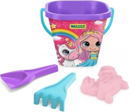 Descoperă bucuria jocului în nisip cu setul pentru nisip IML, 4 piese. Găletușa practică de 2 litri, cu toartă rezistentă și imprimare IML care nu se zgârie (de ex. prințese cu curcubeu și unicorn sau mașinuțe vesele), este completată de o lopățică, o greblă și o formă de crab sau bărcuță. Construcția durabilă rezistă la soare și apă, fiind pregătită pentru aventuri zilnice pe plajă și la locul de joacă.