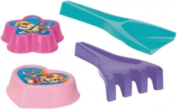Setul vesel de nisip cu motivul Patrula Cățelușilor aduce copiilor distracție nesfârșită atât în parc, cât și pe plajă. Conține lopățică, greblă și 2 forme în culori diferite. Plastic ușor, prindere confortabilă și design atrăgător pentru micii constructori de la 12 luni.