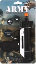 Pistolă-mitralieră pentru copii care creează iluzia unei arme reale datorită accesoriilor sale efectuoase. Ideală pentru jocuri de rol și jocuri sigure, această pistolă-mitralieră este realizată din plastic de calitate și este proiectată pentru a oferi ore întregi de distracție.