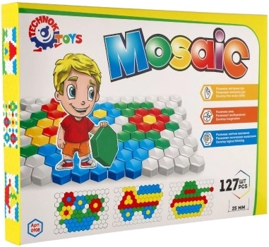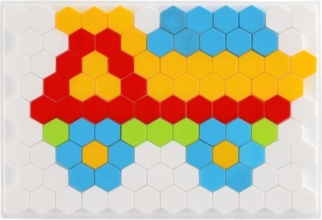 Intrați într-o lume a culorilor și formelor cu acest set mozaic. Baza este un suport alb, care amintește de un fagure pe care se pot plasa piese colorate din plastic. Mozaicul stimulează creativitatea, abilitățile spațiale și dezvoltarea motoricii fine a copiilor.