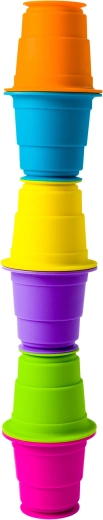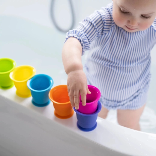 Datorită ventuzelor integrate, cănuțele aderă ușor la suprafețe netede – pe masă, în cadă sau pe frigider. Ideale pentru construcții creative și joacă în apă.