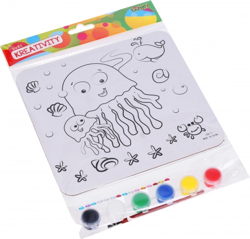 - 1x imagine, 6 culori, 1x pensulă, pietricele autocolante