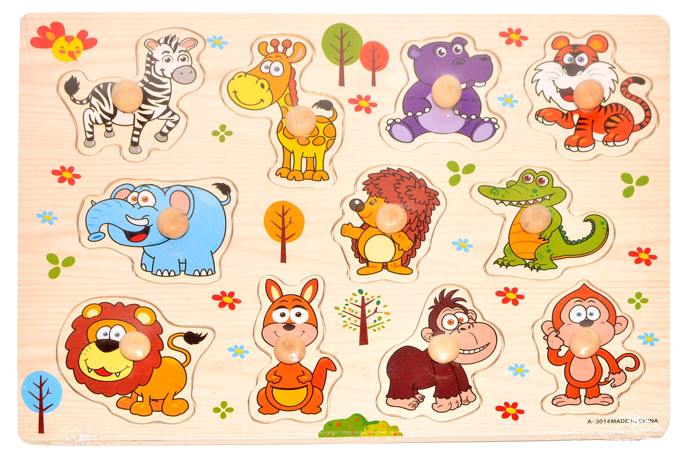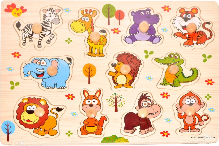Acest puzzle din lemn de calitate, cu motive animale, este ideal pentru primele activități educative ale copiilor. Datorită pieselor solide, se prinde ușor și ajută la dezvoltarea coordonării mână–ochi și a răbdării. Ilustrațiile colorate atrag și motivează copiii la joacă.
