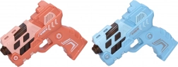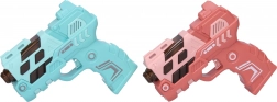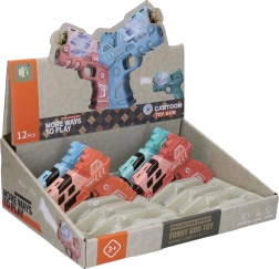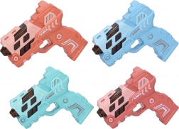 Pistol de jucărie distractiv, cu dimensiunea de 12 cm, oferă efecte luminoase și sonore și proiecție de imagine pentru și mai multă acțiune. Disponibil în 4 variante de culoare (albastru, verde, portocaliu, roz). Alimentare cu 2× AAA, baterii neincluse în pachet.