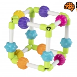 Jucăria Quubi este concepută pentru a sprijini curiozitatea naturală a bebelușilor. Este fabricată din material moale și elastic, plăcut la atingere și sigur pentru gingiile copiilor. Datorită texturilor și formelor diferite, copilul își exersează simțul tactil, coordonarea mână-ochi și descoperă noi stimuli.