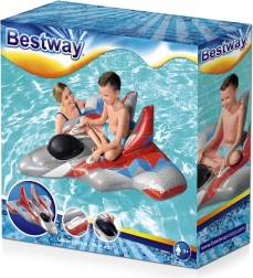 Porniți într-o aventură cu avionul de vânătoare gonflabil Bestway, care este companionul ideal pentru jocurile acvatice. Datorită mânerelor rezistente, veți putea face față chiar și celor mai sălbatice valuri în confort total. Grafica realistă și dimensiunea impresionantă de 136 x 135 cm vor încânta orice tânăr pilot. Materialele de primă clasă și prelucrarea minuțioasă vă asigură distracție pe plajă sau în piscină.