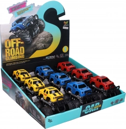Mașină de teren compactă, cu lungimea de 13 cm, care îi va încânta pe micii șoferi de la 3 ani. Datorită mecanismului inerțial pornește înainte fără baterii, oferă o cursă distractivă și este disponibilă în trei variante de culoare – roșu, albastru și galben.