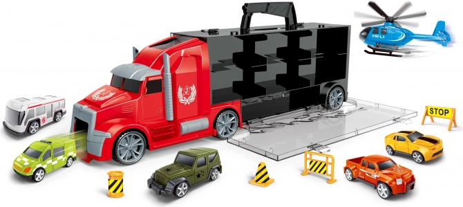 - Camion cu remorcă, 5 mașinuțe, 1 elicopter