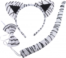 Cauți un costum simplu și de efect pentru copii? Acest set de tigru alb este alegerea perfectă. Datorită bentiței confortabile cu urechi, cozii ușoare și papionului stilat, creezi într-o clipă un costum drăguț de animal. Grozav pentru carnaval, petreceri și ședințe foto tematice.