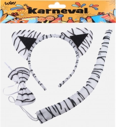 Set de carnaval adorabil, cu design de tigru alb, care transformă rapid orice copil. Conține bentiță cu urechiușe, coadă și papion – accesoriul ideal pentru bal mascat, petreceri pentru copii și serbări școlare. Potrivit pentru copii de la 3 ani.