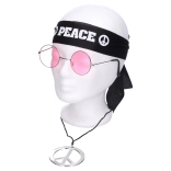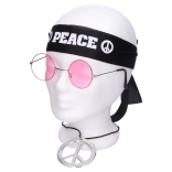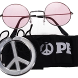 Creează un look retro autentic cu acest set de carnaval hippie stilat. Pachetul conține tot ce ai nevoie pentru atmosfera relaxată a anilor ’60 și ’70: ochelari colorati, eșarfă și pandantiv – ideale pentru carnaval, petreceri tematice și festivaluri.