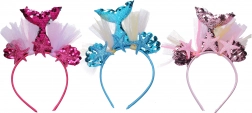Elegantă bentiță de carnaval inspirată de tema Sirenă, adaugă o notă magică costumului tău. Disponibilă în trei culori frumoase.